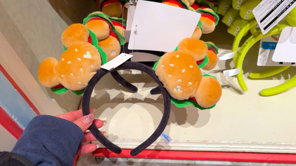 ハンバーガーのミッキーシェイプをモチーフにしたカチューシャ。バンズのゴマがミッキーになってて、遊び心満点◎